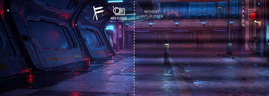 Anti-Flicker ve Less Blue Light teknolojileri ekrandaki kırpışmayı azaltarak ve mavi ışık yayılımını sınırlandırarak konforlu bir izleme deneyimi yaşatır. Böylece göz yorgunluğu yaşamadan saatlerce oynayabilirsiniz.